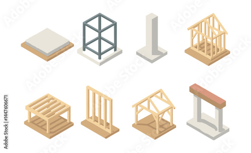 House building frame 3d isometric vector icon. Isolated house construction architecture on white background