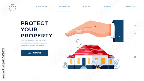 House insurance concept. Life, medical insurance plan. Protect your home. Vector web site design template. Landing page website concept illustration.
