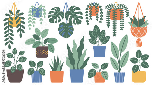 House plants seamless pattern. Trendy home decor with plants vector illustration. Flowers in pot, house interior design.