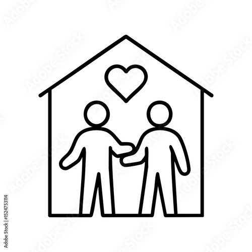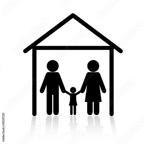 House building with family silhouettes, vector illustration in paper art style. Happy family buying, renting new home. Residential real estate company services.