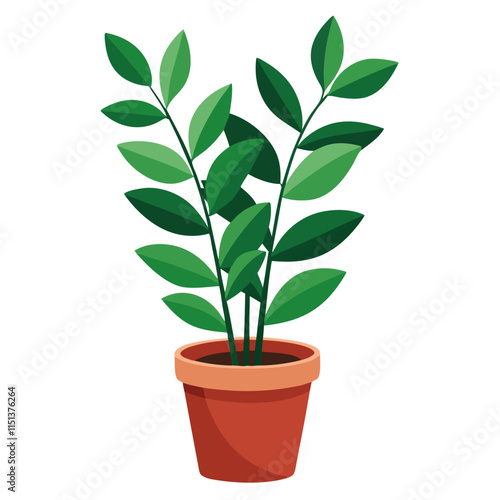 Houseplant vector. Home garden potted flower with green leaf on stem flat icon. Cartoon room decoration isolated on white background. Flowerpot illustration