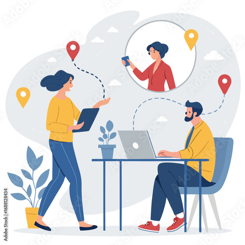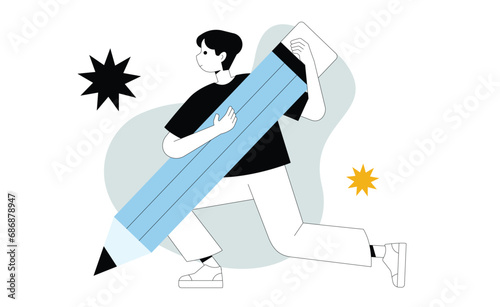 Housework man hanging curtain in bathroom vector icon isolated on white background
