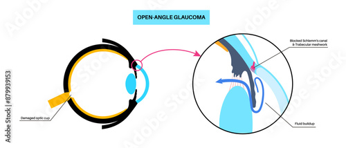 Human eye anatomy cross section medical diagram, vector flat isolated illustration. Structure of healthy eye and with glaucoma, cataract, hyperopia, myopia diseases and disorders.