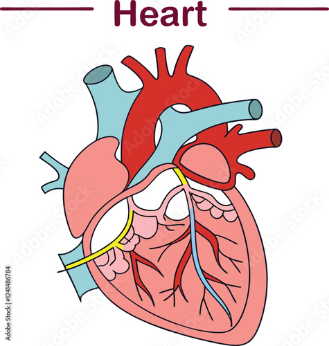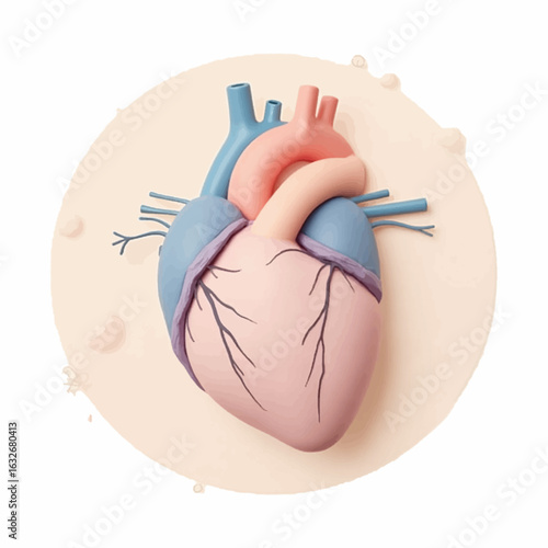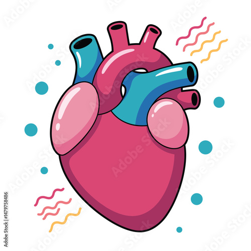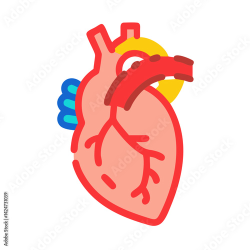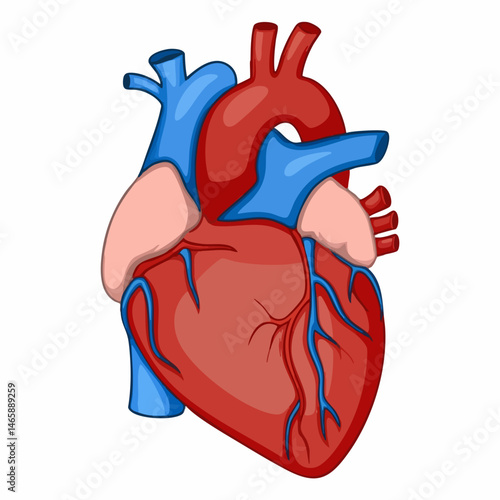 Human heart vector. Organ medical anatomy with blood coronary artery, vein and aorta icon illustration isolated on white background