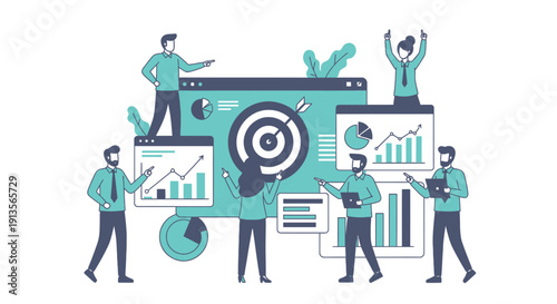Busy office workers doing a lot of work at the same time, vector flat illustration. Businessman holding gear, lightbulb, hourglass, smartphone in four hands. Human multitasking concept.