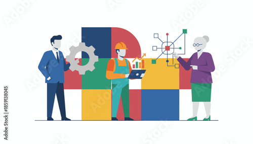 Volunteers giving donation boxes to needy people, vector flat illustratin. Medical supplies, food and clothing donation. Humanitarian aid concept for web banner, website page etc.