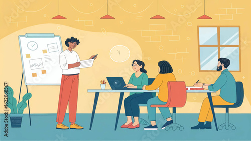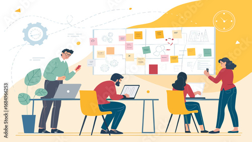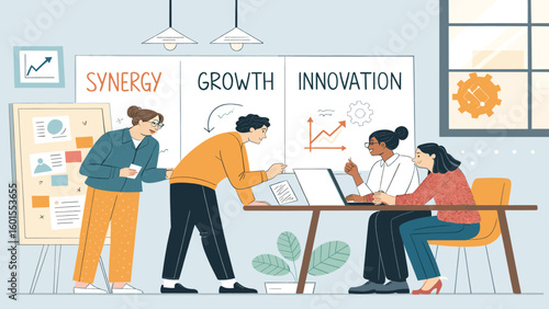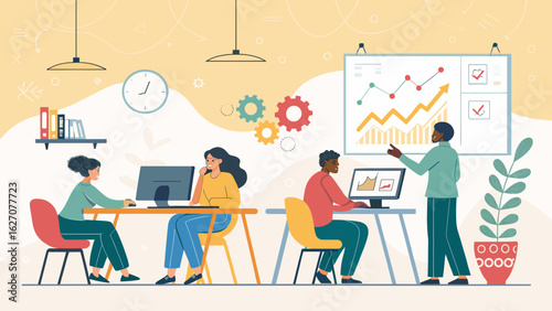 Humanitarian aid, vector flat illustration. Tiny male and female characters distributing food, medical supplies to people in need from huge cardboard boxes. Volunteering, donation, humanitarian relief