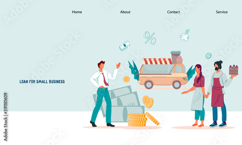 Humanitarian aid vector website template, landing page design for website and mobile site development. Humanitarian workers handing out food, clothes other item to people in need.