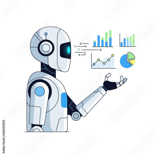 Humanoid robot futuristic cyborg digital character vector icon isolated on white background
