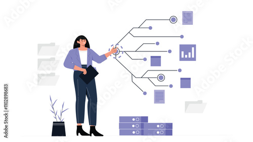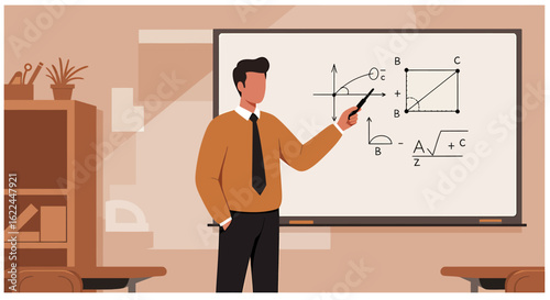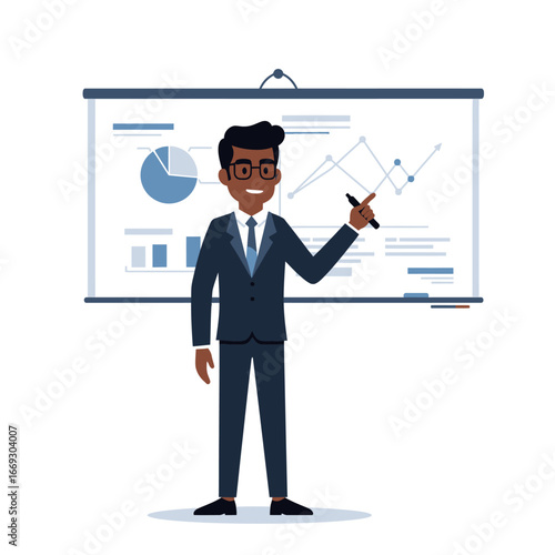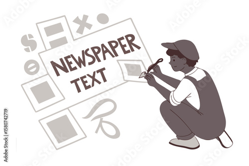 Vector illustration of fisherman catching fish while sitting on chair. Fisher with fishing rod flat style design element, icon isolated on white background.