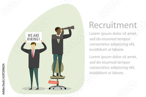 Vector illustration of hunter holding rabbit in one hand and rifle in the other. Hunter people flat style design element, icon isolated on white background.