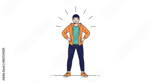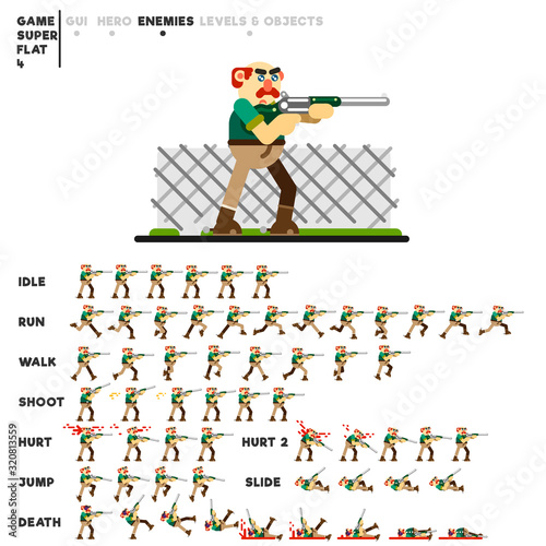 Vector illustration of hunter shooting flying wild duck. Hunter people flat style design element, icon isolated on white background.