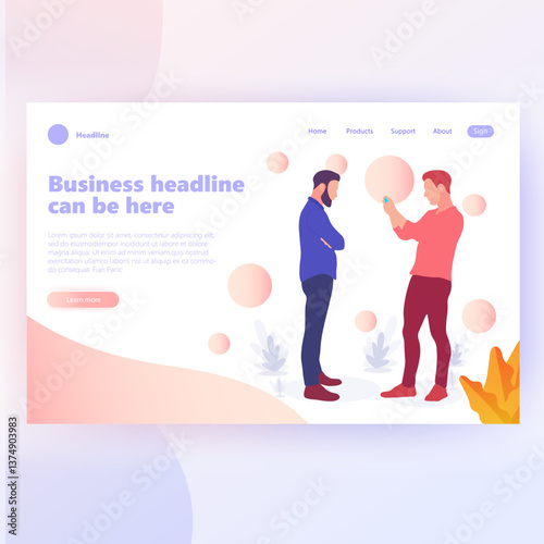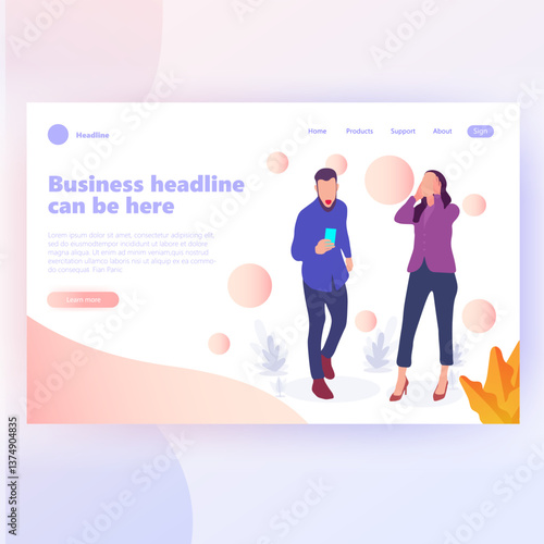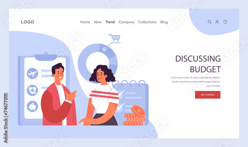 Husband helps his wpregnant wife to exercise with fitness ball. Pregnancy concept illustration. Vector web site design template. Landing page website illustration.