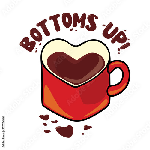 I love coffee quote. Vector illustration of takeaway coffee cup with coffee sayings, spoon and coffee beans heart.