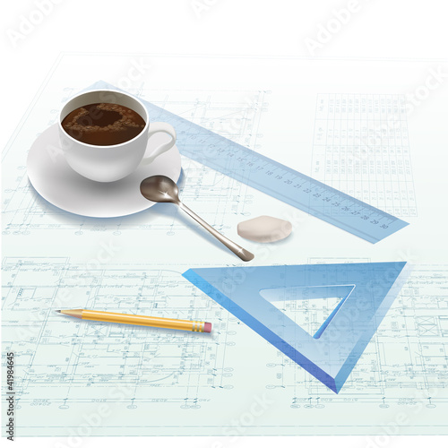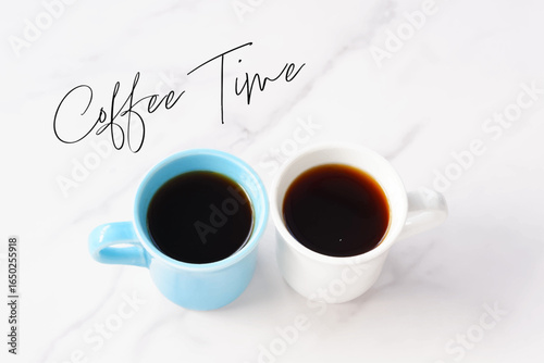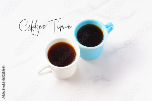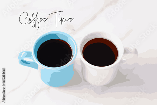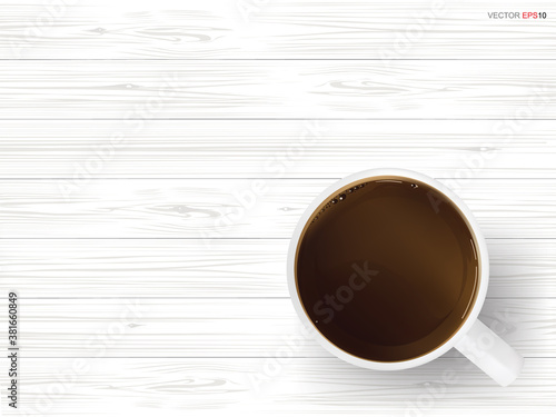 I love coffee quote. Vector top view illustration of coffee cup with saucer, spoon and coffee beans heart.