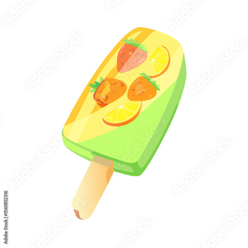 Ice cream vector. Paper cut design. Summer food, beach dessert art style. Vacation and travel symbol. Cold frozen sweet meal. Craft origami