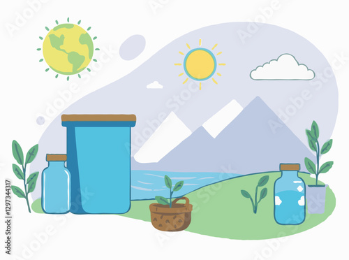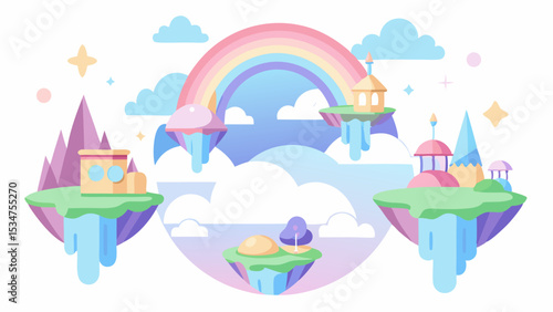 Ice cream packaging plastic bucket, tub, container mockup, paper cut sky with clouds, hot air balloons and rainbow, vector illustration. Natural healthy sweet dessert, dairy food product ads template.