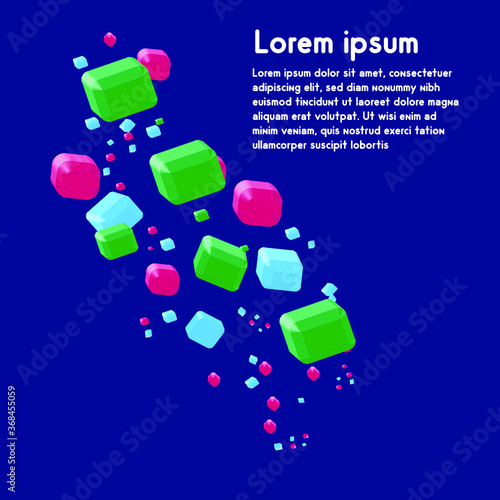 Ice cube wallpaper. Vector realistic illustration. Frozen water cube shape abstract background.