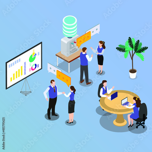 Ice hockey draft process concept flat vector isometric illustration. Professional sport hockey league teams selecting players from junior teams.