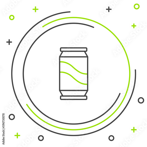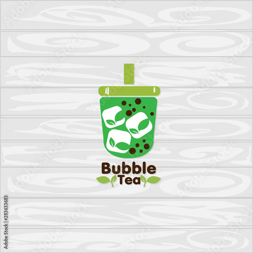 Vector realistic illustration of aluminium can with ice tea label and ice cubes, bubbles around it. Green ice tea aluminum can package mock up. Ice tea drink poster, banner, flyer design template.