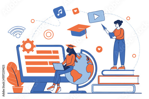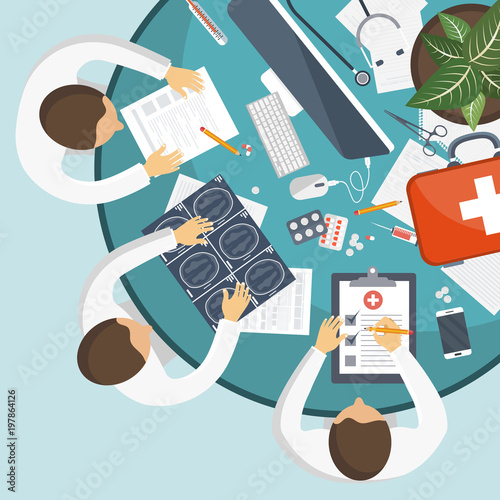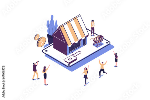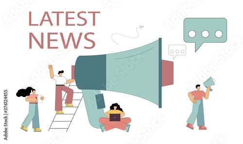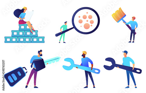 Idea creation, vector flat style design illustration. Tiny business people doing huge light bulb jigsaw puzzle together. Creative process of idea generating, developing, solution collaboration concept