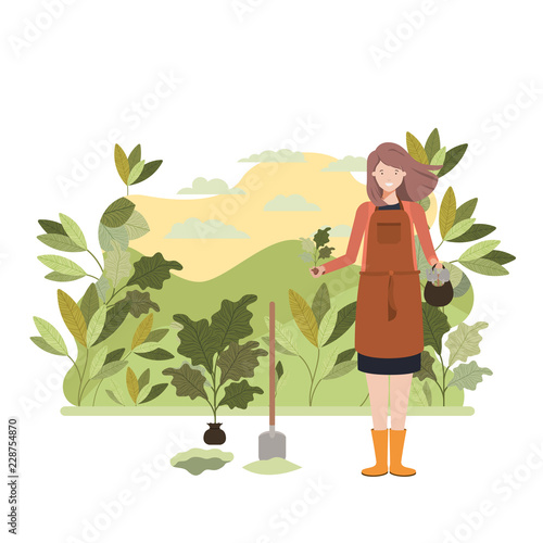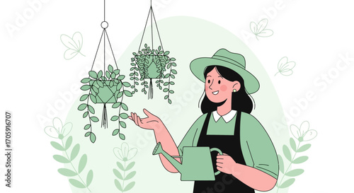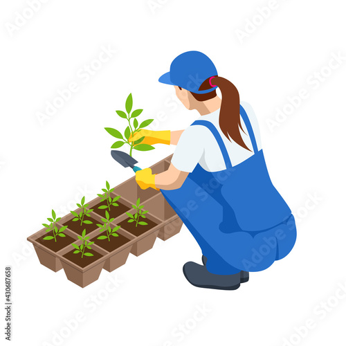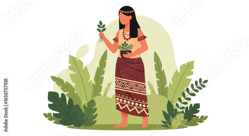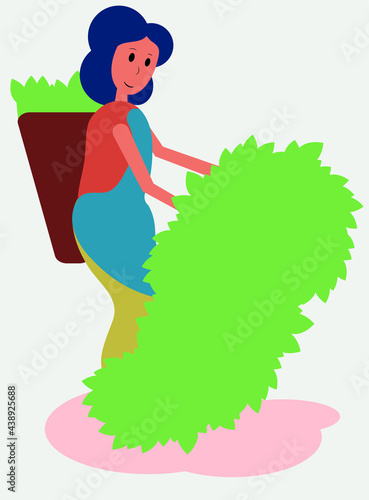 Indian woman farmer picking green tea leaves from bush vector icon isolated background.