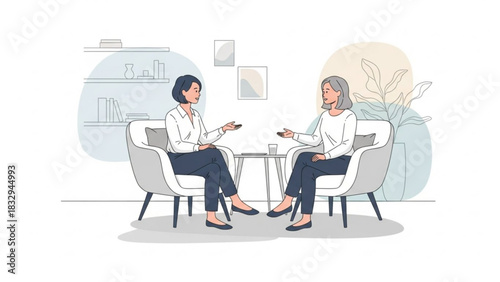 Psychotherapy session vector flat illustration. Psychotherapist counseling patient having mental health problems. Individual therapy concept for web banner, website page etc.