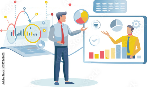 Man with shopping basket, calendar, rising arrow, flat vector isometric illustration. Inflation in economics. Increase in prices for food, consumer goods, loss of purchasing power.