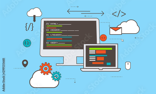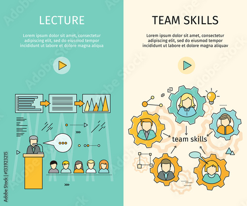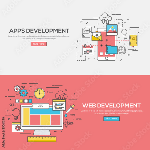 Vector set of horizontal banners with ICO, Work and Cryptocurrency line art flat style design elements, web templates.