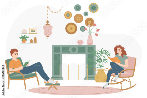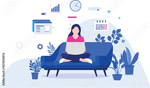 Insectophobia landing page design, website banner template set, flat vector illustration. Scared woman sitting on sofa and looking at spider coming down from ceiling. Fear of insects or bugs.