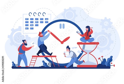 Inspirational tea quotes and sayings hand lettering typography with happy couples enjoying green or black tea, vector flat illustration isolated on white background.