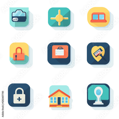 Insurance icon vector set. Car, money, property and health safety isolated 3d icon on white background. professional care of life, house, vehicle, business and finance illustration