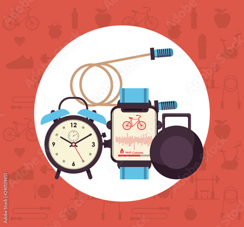 Intermittent fasting vector. Diet food and time-restricted eating health banner. Active sportive people training and nutrition ingestion schedule clock illustration. Healthy eating and weight loss concept