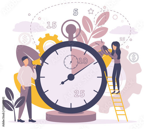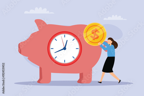 Intermittent or interval fasting. Happy girl practicing fasting and eating on regular schedule, flat vector illustration. Weight management, weight loss.