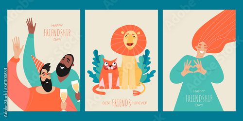 International women day posters and cards, vector illustration set. Man gives flowers bouquet to woman. 8 March holiday banner with tulip flower pattern background. Happy women day design.