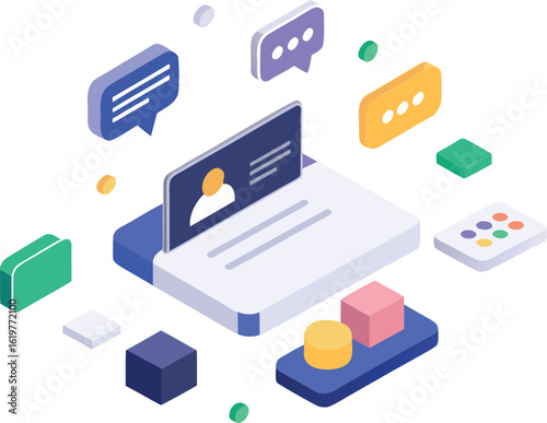 Internet of things, automated home, flat vector isometric illustration. Smart household appliances and devices controlled by mobile phone. Iot, smart house wireless technology.