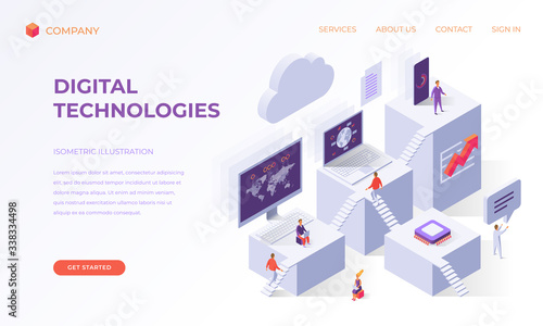 Internet store, flat vector isometric illustration. Online shopping with mobile app, ecommerce, electronic payment, internet retail business.