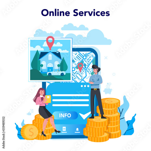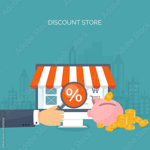 Investment in bitcoin concept vector illustration. Bitcoin sign on hand palm, desktop computer, piggy bank, dollar coins. Online funding and investing in cryptocurrency poster, banner.