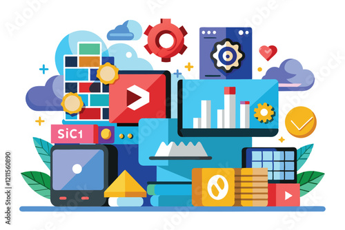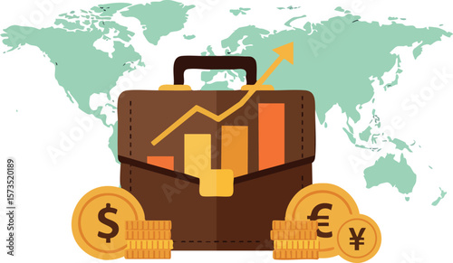 Investment in bitcoin concept vector illustration. Wallet with dollar coins, computer monitor with bitcoin sign and dollar coins derived from investments in bitcoin cryptocurrency. Flat style design.