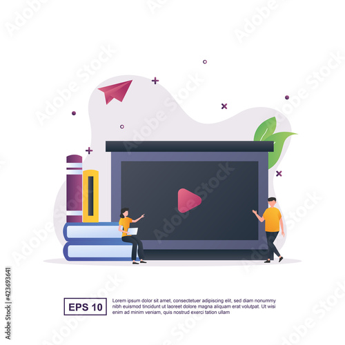 Investment in education concept vector flat illustration. Computer, academic graduation cap, hourglass, desk lamp, stationery. Investing in employee education, growth and development poster, banner.