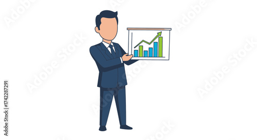 Vector illustration of confident businessman investor with money. Creative team people flat style design element, icon isolated on white background.