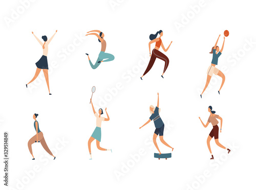 Isolated set of male and female ballet dancers wearing pointe shoes performing and practicing classic dance movement. Man and woman exercising alone or in pair vector illustration
