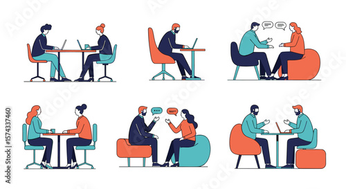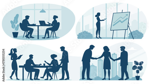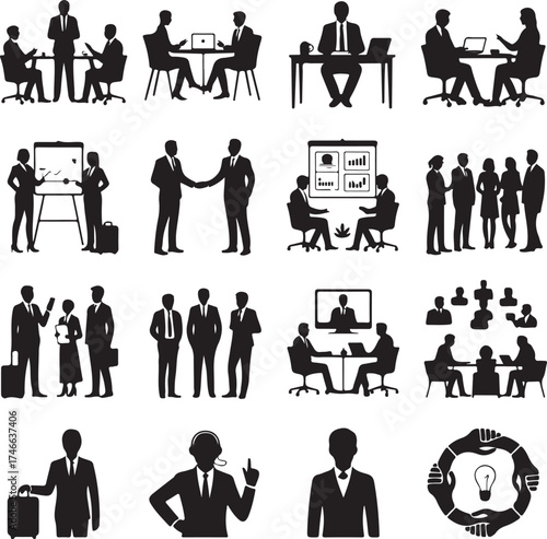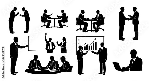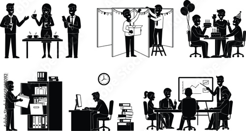 Isolated set of office people silhouette doing their job on white background. Vector illustration of man and woman employee characters