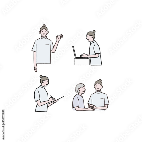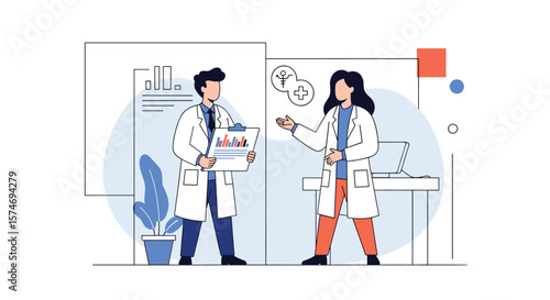 Isolated set of ophthalmologist using clinical ophthalmology tools. Male and female doctor characters examining patients vision vector illustration