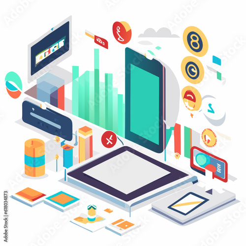 Mobile banking. Isometric bank building, gold bar on smartphone screen, vector illustration. Mobile service and online financial transactions. Gold deposit, bank investments.