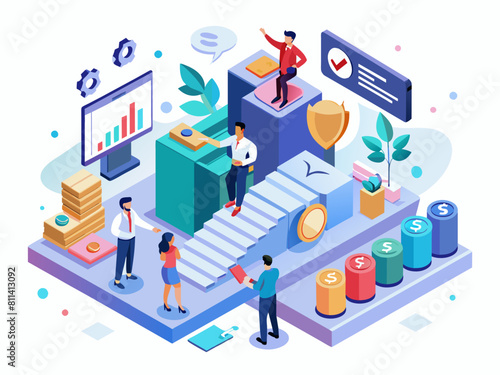 Bus stop. Disabled man in wheelchair leaving city bus using wheelchair access ramp, flat vector isometric illustration. Disabled person lifestyle. City public transport accessibility.