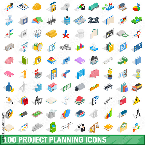 Isometric business icon set, flat vector isolated illustration. Business rocket launch, project startup, creative idea concept.