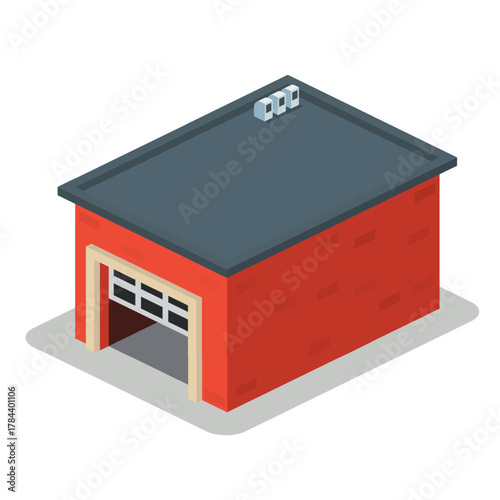 Isometric city building modern shop or office exterior 3d vector. Smart house facade icon illustration for urban map architecture. Commercial real estate isolated on white background