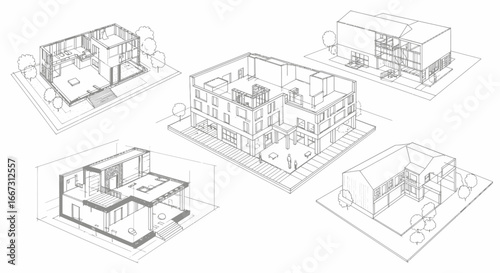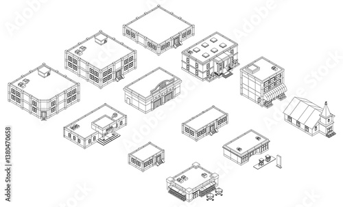 Isometric kitchen interior constructor. Vector set of isometric Furniture elements of home interior isolated on white background. Flat 3d design template.