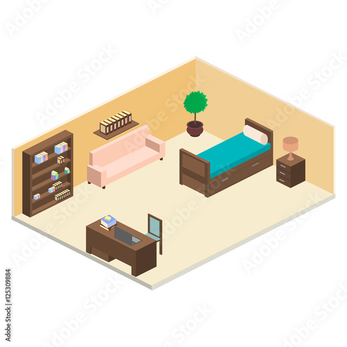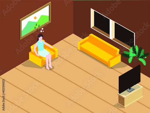 Isometric young man gamer playing basketball video game with controller sitting on sofa in front of tv, flat vector illustration. Online gaming, video console games.